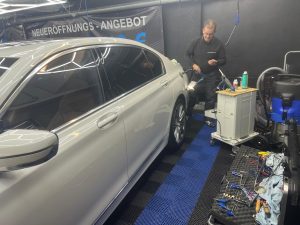 Lackpflege: Polieren des Lacks, um Kratzer und Oxidation zu beseitigen. Oft wird auch eine Versiegelung oder Wachs aufgetragen, um den Lack zu schützen.